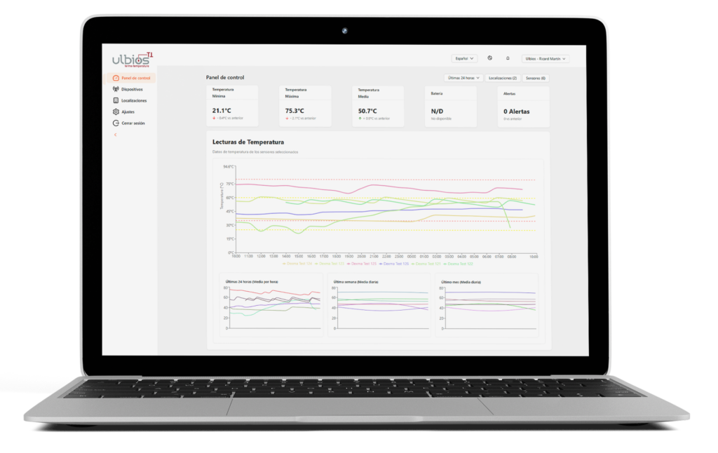 Acceso gratuito a ULBIOS TT Platform, herramienta de análisis y gestión de los dispositivos, con todos los datos registrados mediante dashboards personalizables y descargables.